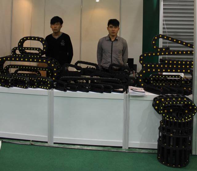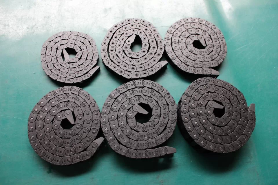 本公司拖鏈采用全新增強(qiáng)尼龍66材質(zhì)制成(尼龍料PA66:70%+增強(qiáng)料玻璃纖維30%)制成,具有耐磨、高強(qiáng)韌性等特點(diǎn)。質(zhì)保三年,終身維護(hù)