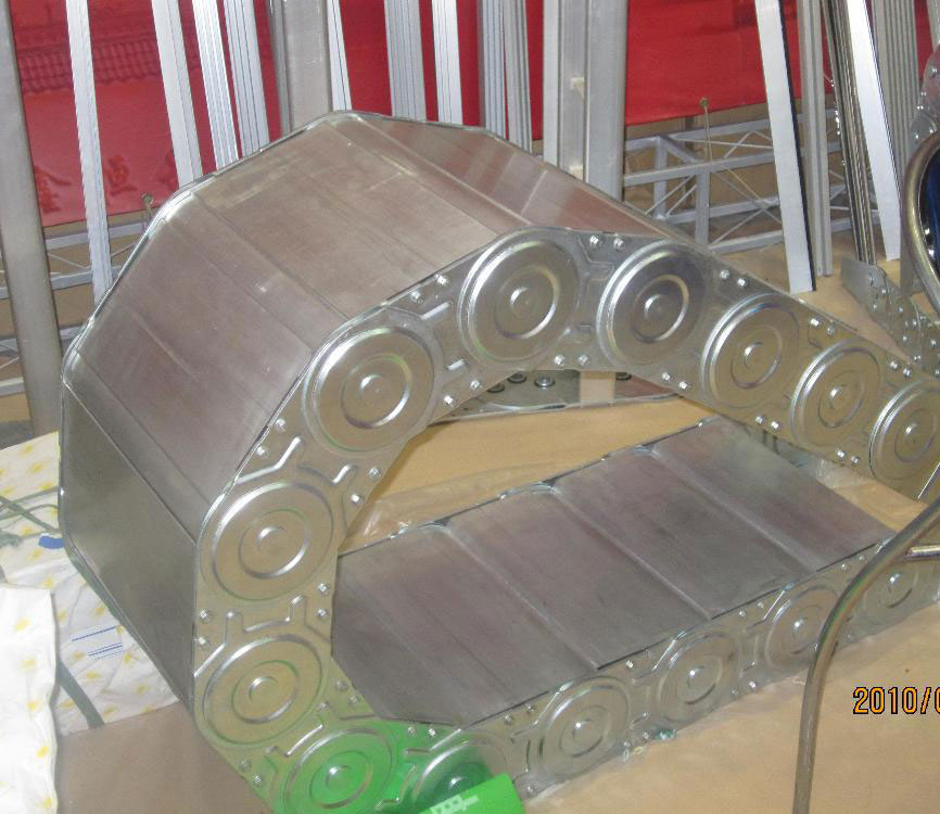 (2)鋼制拖鏈的每一節(jié)都能打開,便于安裝和維修。運動時噪音低、耐磨,可高速運動。